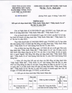 Thông báo kết quả xét chọn danh hiệu “Thầy thuốc Nhân dân”, “Thầy thuốc Ưu ...
