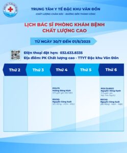 TỪ NGÀY 30/7 – 01/8/2025 ——————————————- Liên hệ đặt lịch: TTYT Đặc khu Vân Đồn ...