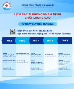 TỪ NGÀY 21/7/2025 – 25/7/2025 Liên hệ đặt lịch:Trung tâm Y tế Đặc khu Vân ...