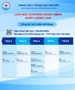 Từ ngày 14/7/2025 đến 18/7/2025 Liên hệ đặt lịch:Trung tâm Y tế đặc khu Vân ...