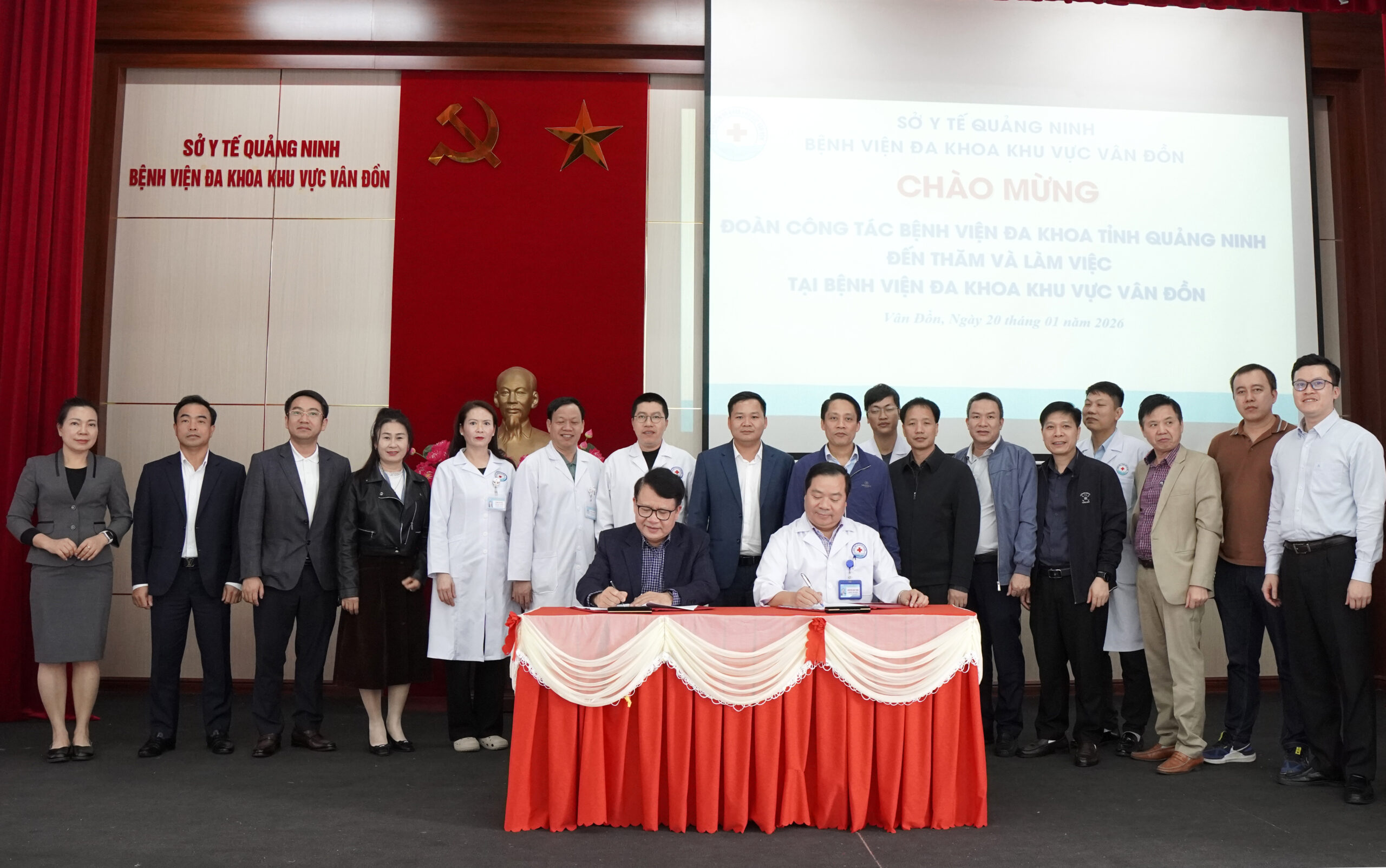 Nhằm nâng cao chất lượng dịch vụ khám chữa bệnh cũng như không ngừng học hỏi, nâng cao kĩ năng chuyên môn, nghiệp vụ, ngày 20/1/2026, Bệnh viện ĐKKV Vân Đồn và Bệnh viện ĐK tỉnh Quảng Ninh đã kí kết về việc triển khai công tác hỗ trợ chuyên môn, chuyển giao kĩ thuật 2026.