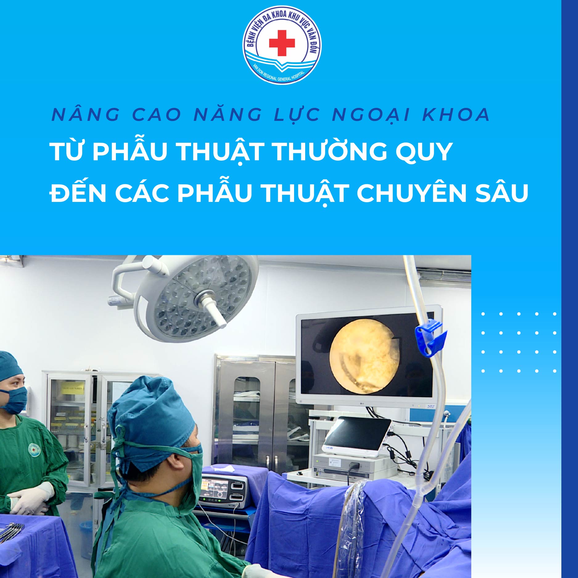 Trong những năm gần đây, Bệnh viện Đa khoa Khu vực Vân Đồn không ngừng đầu tư nâng cao năng lực chuyên môn, đặc biệt trong lĩnh vực ngoại khoa. Từ việc làm chủ các phẫu thuật thường quy, bệnh viện đã từng bước triển khai nhiều kỹ thuật phức tạp, góp phần nâng cao chất lượng điều trị, giúp người dân trong khu vực được tiếp cận các dịch vụ y tế chất lượng ngay tại địa phương mà không phải chuyển tuyến xa.