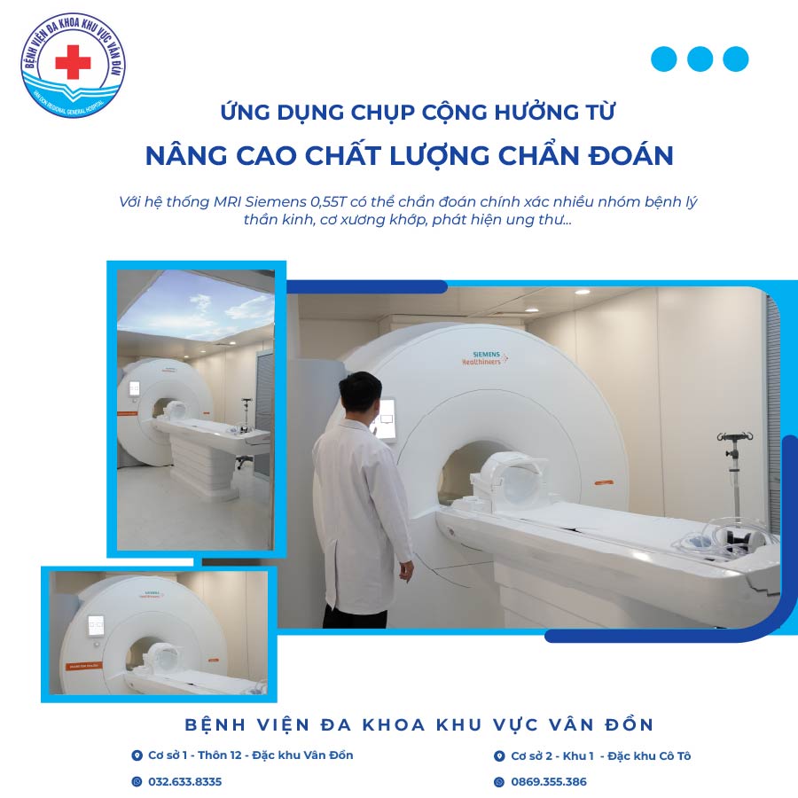 Nhằm không ngừng nâng cao chất lượng khám chữa bệnh, từng bước đưa các kỹ thuật y học hiện đại đến gần hơn với người dân, Bệnh viện ĐKKV Vân Đồn triển khai kỹ thuật chụp cộng hưởng từ (MRI) với hệ thống máy Siemens 0,55T – thiết bị chẩn đoán hình ảnh tiên tiến. Đây là dấu mốc quan trọng, góp phần nâng cao năng lực chuyên môn, đáp ứng nhu cầu chẩn đoán ngày càng cao của người bệnh ngay tại địa phương.