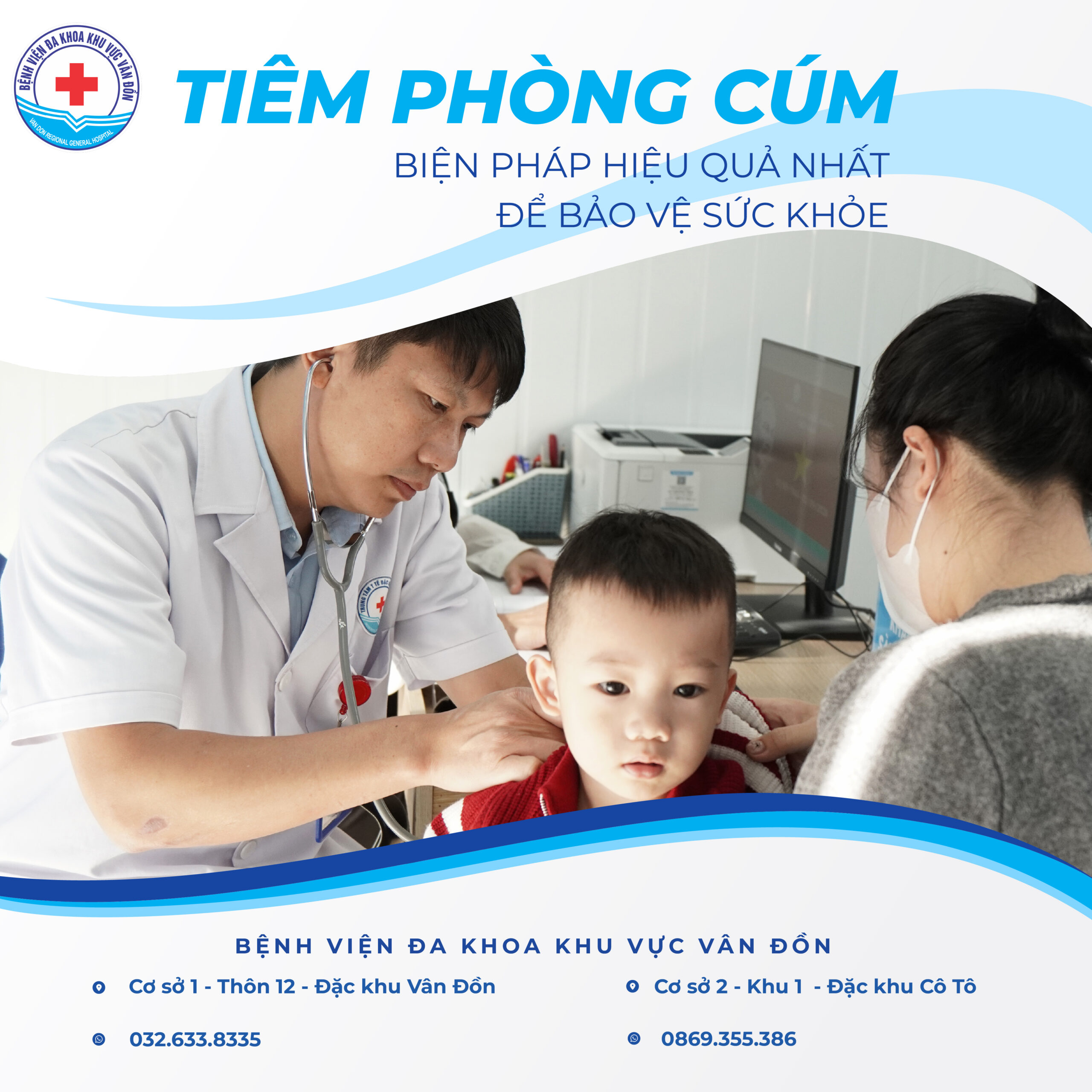 Hiện nay, Bệnh viện Đa khoa Khu vực Vân Đồn đang cung cấp dịch vụ tiêm chủng vắc xin phòng cúm với nguồn vắc xin đảm bảo chất lượng, được bảo quản và sử dụng theo đúng quy định của Bộ Y tế. Người dân khi đến tiêm chủng sẽ được thăm khám, sàng lọc kỹ lưỡng, tư vấn đầy đủ trước tiêm, theo dõi an toàn sau tiêm bởi đội ngũ bác sĩ, điều dưỡng có chuyên môn và kinh nghiệm.