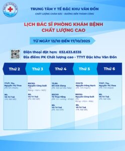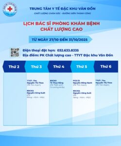 Từ ngày 27/10/2025 – 31/10/2025 Liên hệ đặt lịch:Trung tâm Y tế Đặc khu Vân ...