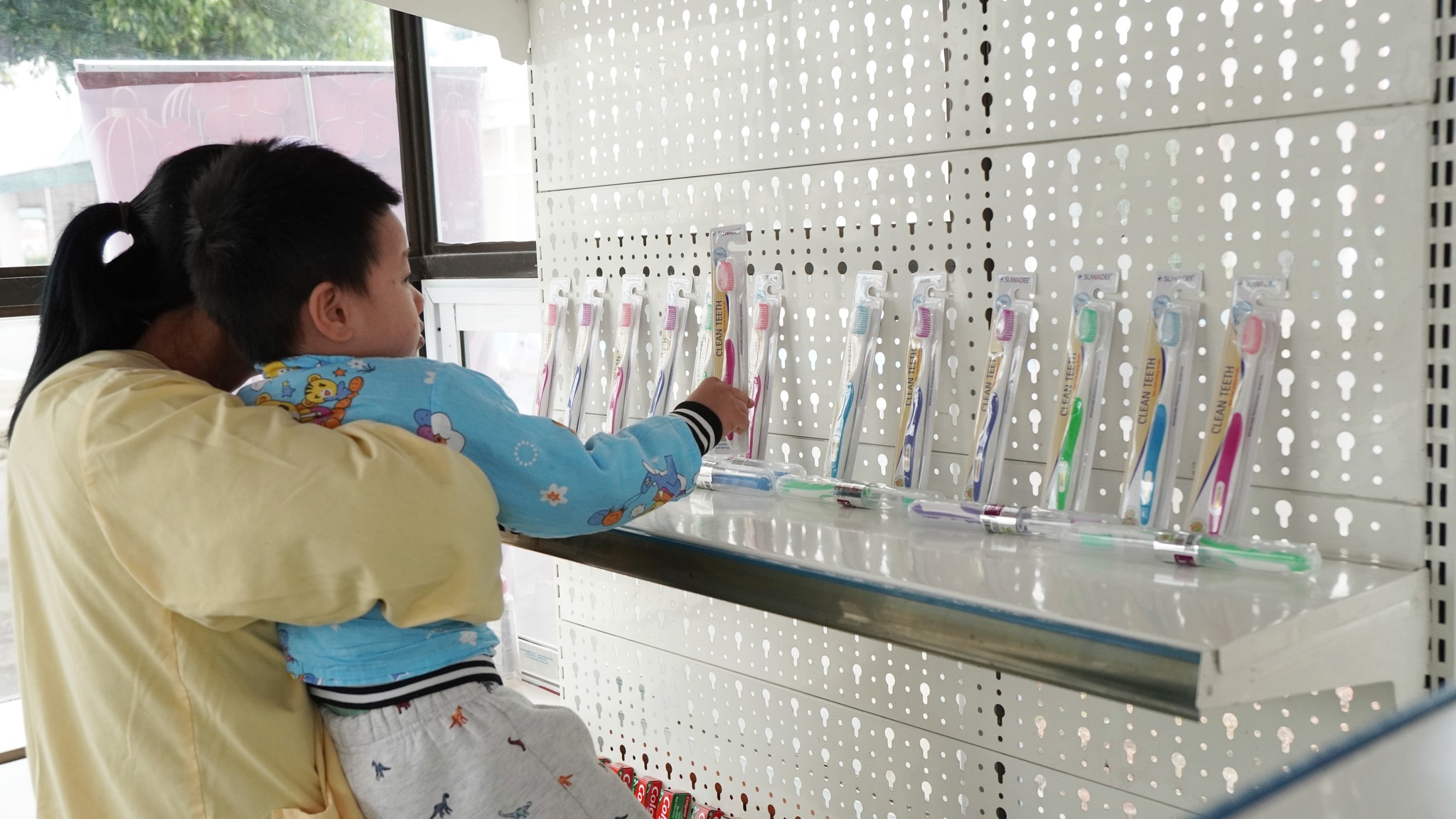 Gian hàng được tổ chức ngay trong khuôn viên bệnh viện, với những vật phẩm thiết yếu như bàn chải, kem đánh răng, đồ dùng cá nhân… Tất cả đều được trao tặng hoàn toàn miễn phí cho người bệnh và người nhà bệnh nhân có hoàn cảnh khó khăn đang điều trị tại bệnh viện.