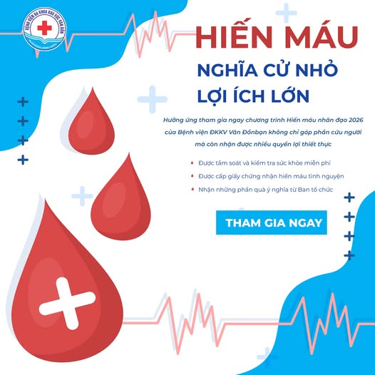 Hưởng ứng tham gia ngay chương trình Hiến máu nhân đạo 2026 của Bệnh viện ĐKKV Vân Đồnbạn không chỉ góp phần cứu người mà còn nhận được nhiều quyền lợi thiết thực: