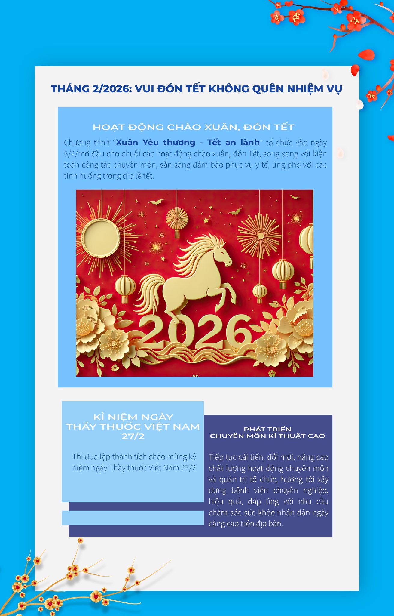 Bước sang tháng 2/2026, trong không khí vui đón Tết Nguyên đán, Bệnh viện tiếp tục nỗ lực “vui xuân nhưng không quên nhiệm vụ”: