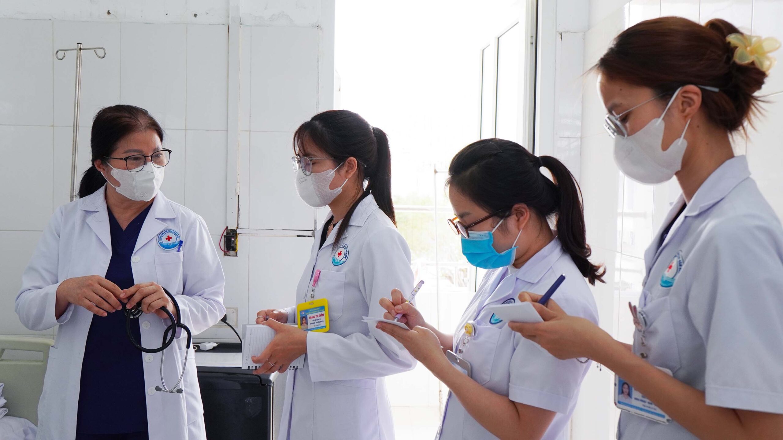 Trong hoạt động chuyên môn thường quy nhằm nâng cao chất lượng điều trị, Th.s Nguyễn Thị Thoa – Chuyên gia tim mạch đã trực tiếp tham gia thăm khám, đi buồng kiểm tra tình trạng người bệnh và hội chẩn cùng các bác sĩ Khoa Nội – Truyền nhiễm – Bệnh viện ĐKKV Vân Đồn.